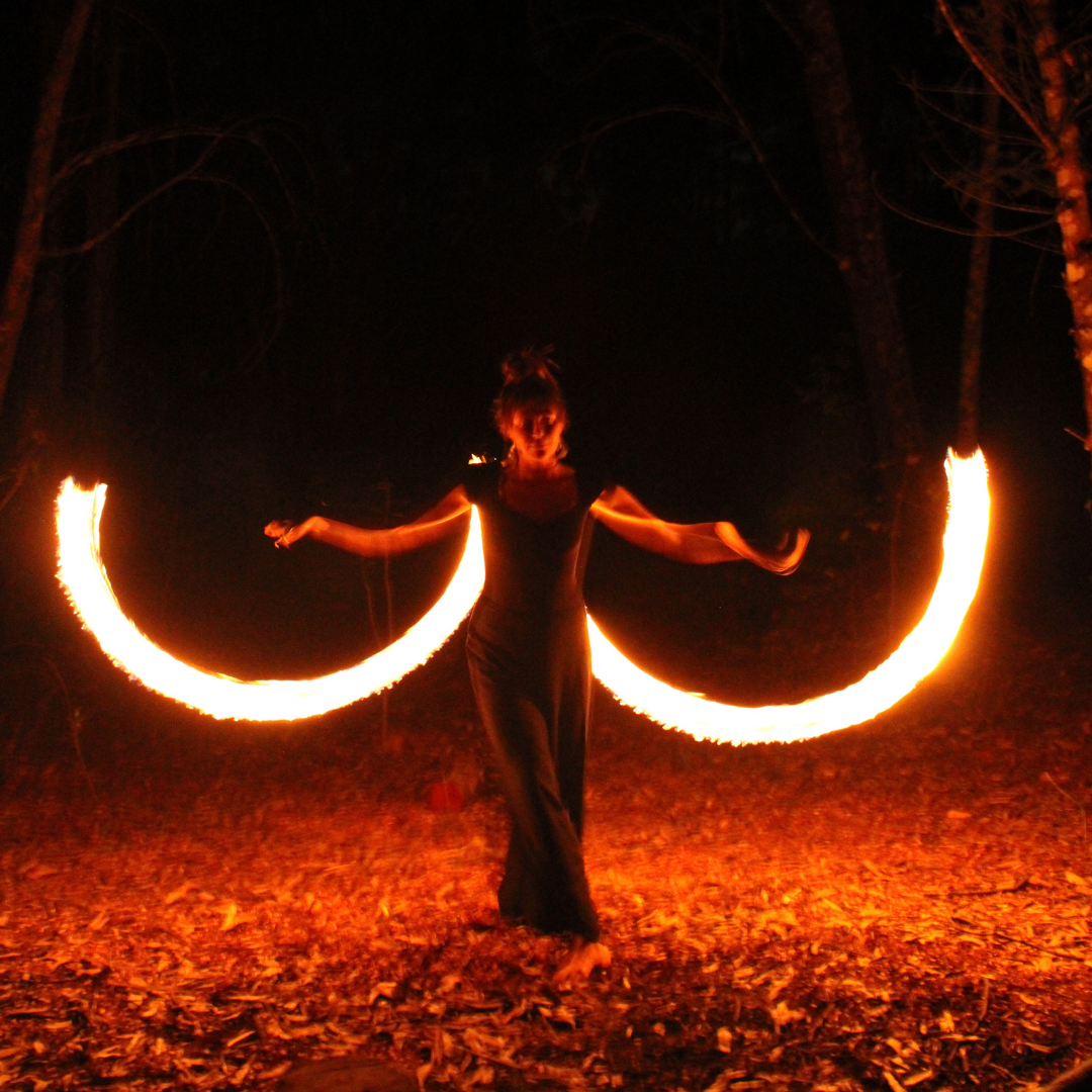 Playing with fire is a potent experience that allows you to connect with your primal passion, your wild wisdom, your calm courage and your sacred sensuality. The palm candles create a small hand-held flame that is quite natural, safe and rather magical. They are easy for anybody to play with – you dont need to be a dancer or have any fancy techniques up your sleeve (although I will show you some cool tricks anyway).