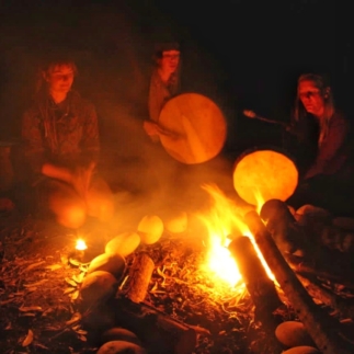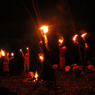 Together, we warm up the body and get comfortable with the palm torches that will hold our flame. We awaken the original fire by the friction of sticks to sing and blow the elemental flame into being.